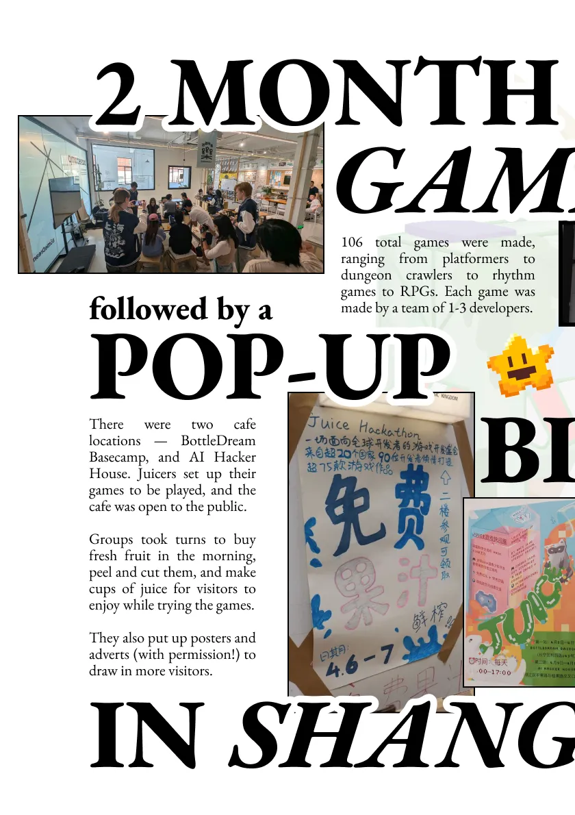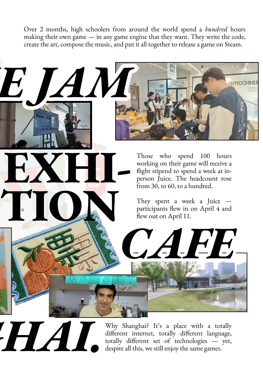 Over 2 months, high schoolers from around the world spent one hundred hours making their own game - and over 100 of them flew to Shanghai to open a pop-up juice bar & game exhibition.